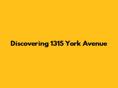 Discovering 1315 York Avenue