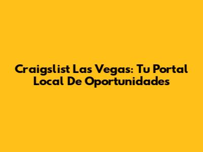 Craigslist Las Vegas: Tu Portal Local De Oportunidades