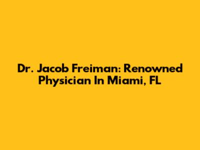 Dr. Jacob Freiman: Renowned Physician In Miami, FL
