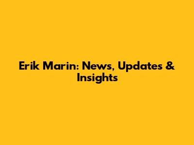 Erik Marin: News, Updates & Insights