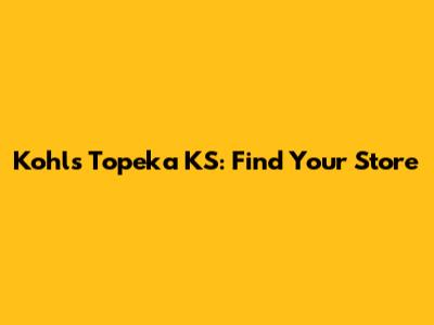 Topeka has several Kohl's locations. To find the one nearest you, use the Kohl's store locator on their website. Enter your zip code or city to see a list of stores and their addresses.