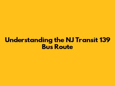 Understanding the NJ Transit 139 Bus Route