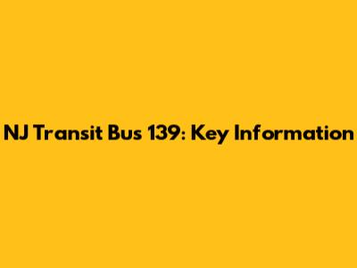 NJ Transit Bus 139: Key Information