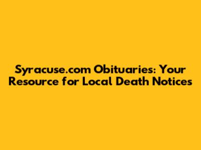- Comprehensive Listings: Syracuse.com compiles obituaries from various funeral homes and sources in the Syracuse area, offering a broad view of recent deaths.