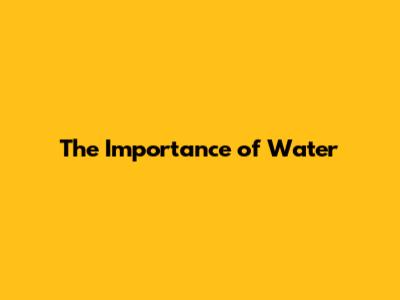 The Importance of Water
